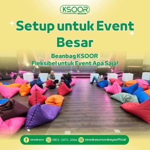 Dengan pengalaman dalam layanan sewa event, KSOOR selalu mengutamakan kualitas dan kenyamanan. Setiap beanbag dirawat dengan baik agar tetap bersih, empuk, dan siap pakai. Sehingga, acara Anda bisa berjalan lancar dengan suasana lebih hangat dan akrab.